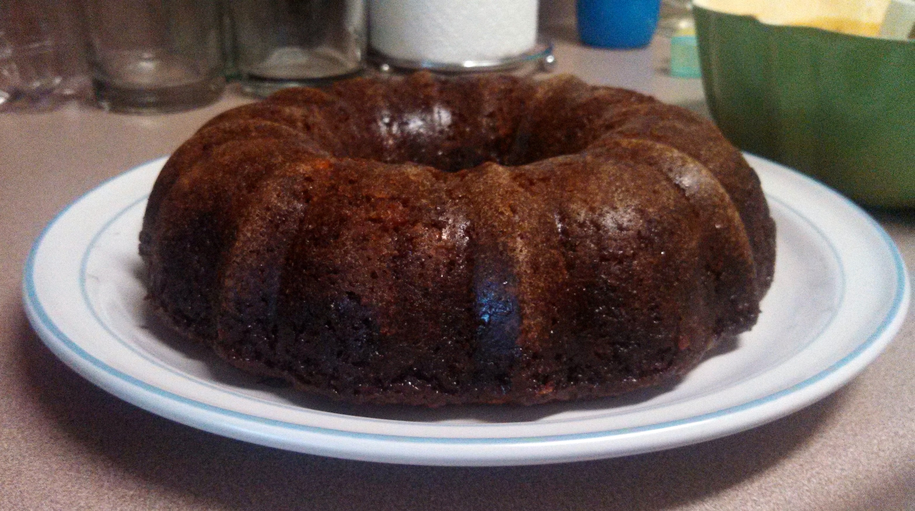 - Even with all of my super careful preparation, this cake is so moist that I had a lot of trouble getting it to release from the pan. Also, I let it cool fully in the pan, which was probably not the best plan. However, a little more internet research yielded the following gem of a tip: boil a couple cups of water, either in your tea kettle or the microwave. Put a clean kitchen towel in your sink. Pour the boiling water over the towel to saturate it. Place the stuck bundt pan into the sink (open-side up) so that the heat and steam from the towel will help to release the cake from the pan. After ten minutes, take the pan out of the sink, and use the flip-it-onto-a-plate trick. (Do you know that trick? If not, let me know, I’ll find a good youtube video to demonstrate.) Worked like a charm!