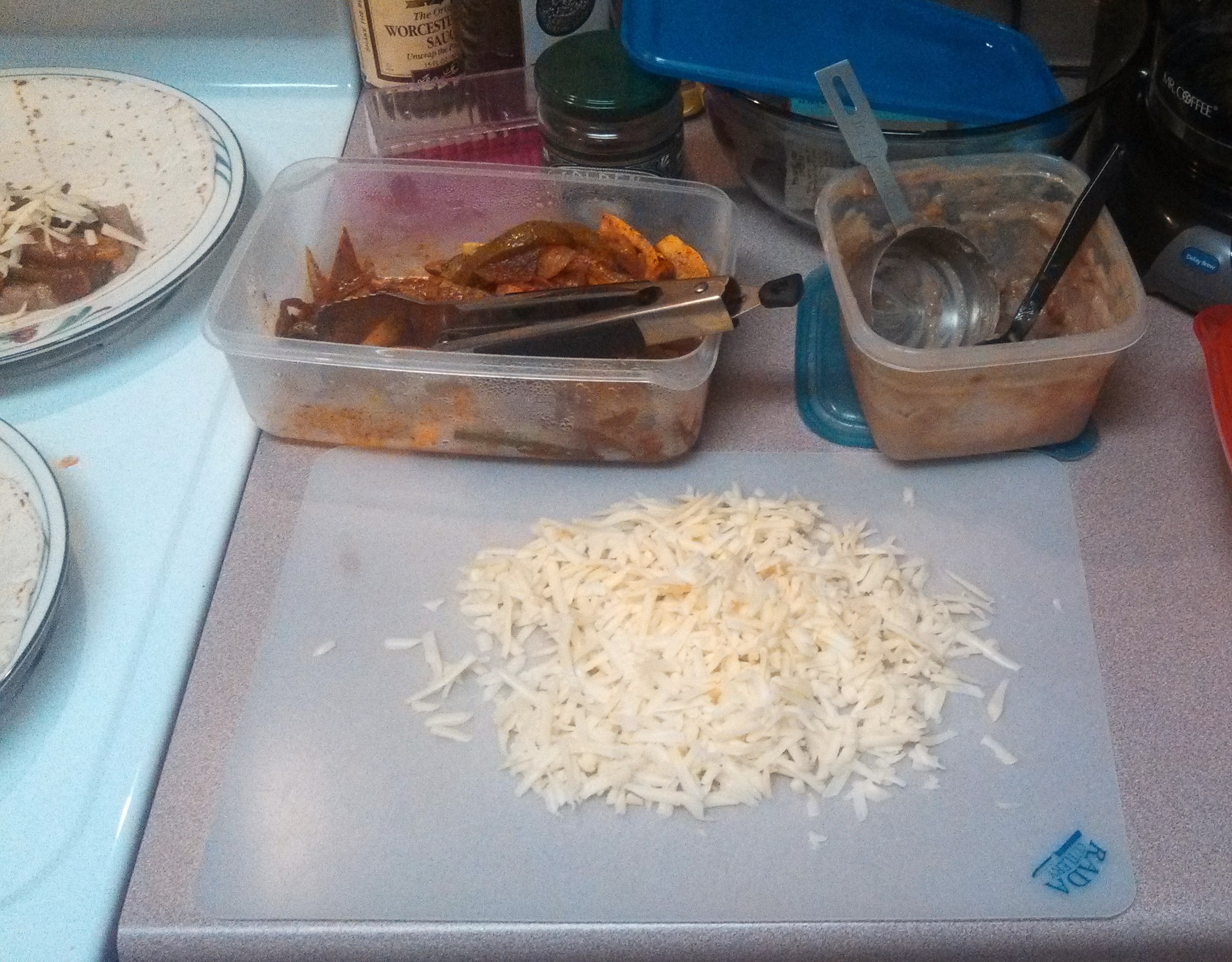 Stir in the salt to taste (I used the whole tablespoon). Put into tupperware and refrigerate until needed for burrito assembly.
