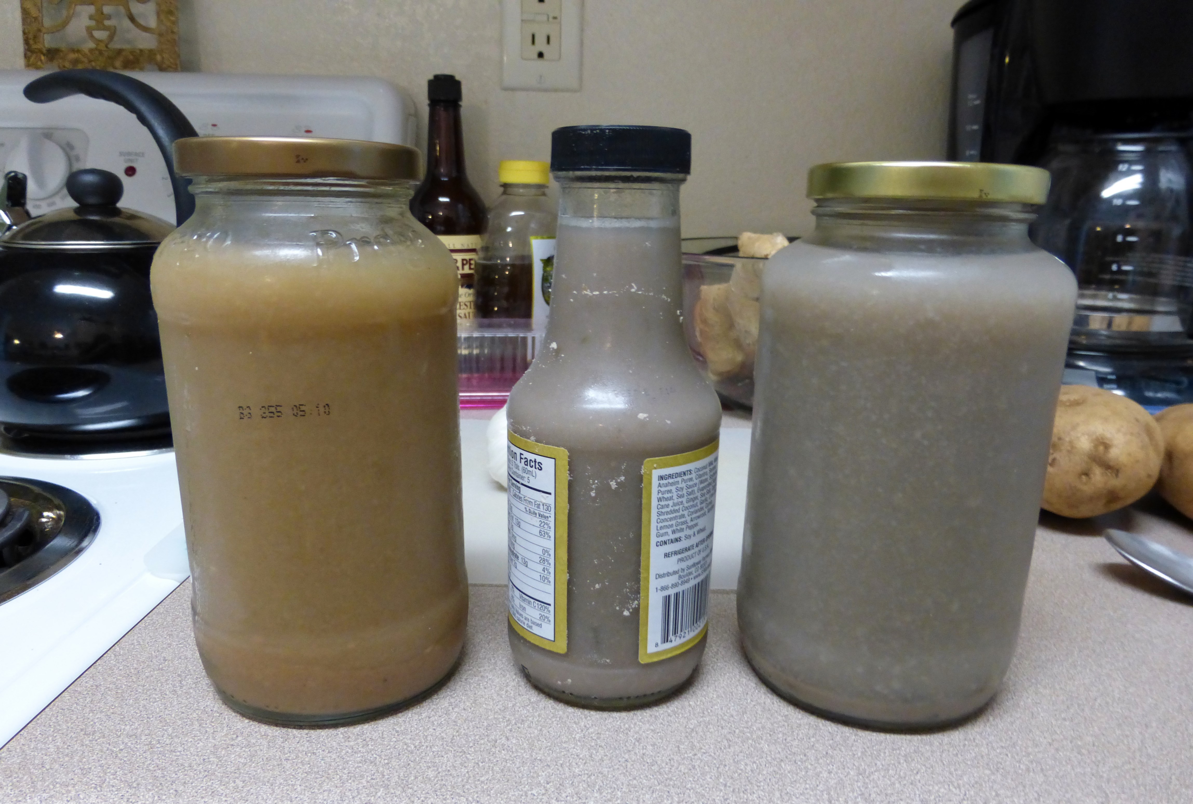 (The jar on the left is from the “Refried” Slow-Cooker Beans that went into the Veggie Burritos. The jars on the right are from the kombu-cooked beans from the Lemony Bean and Mushroom Saute.)