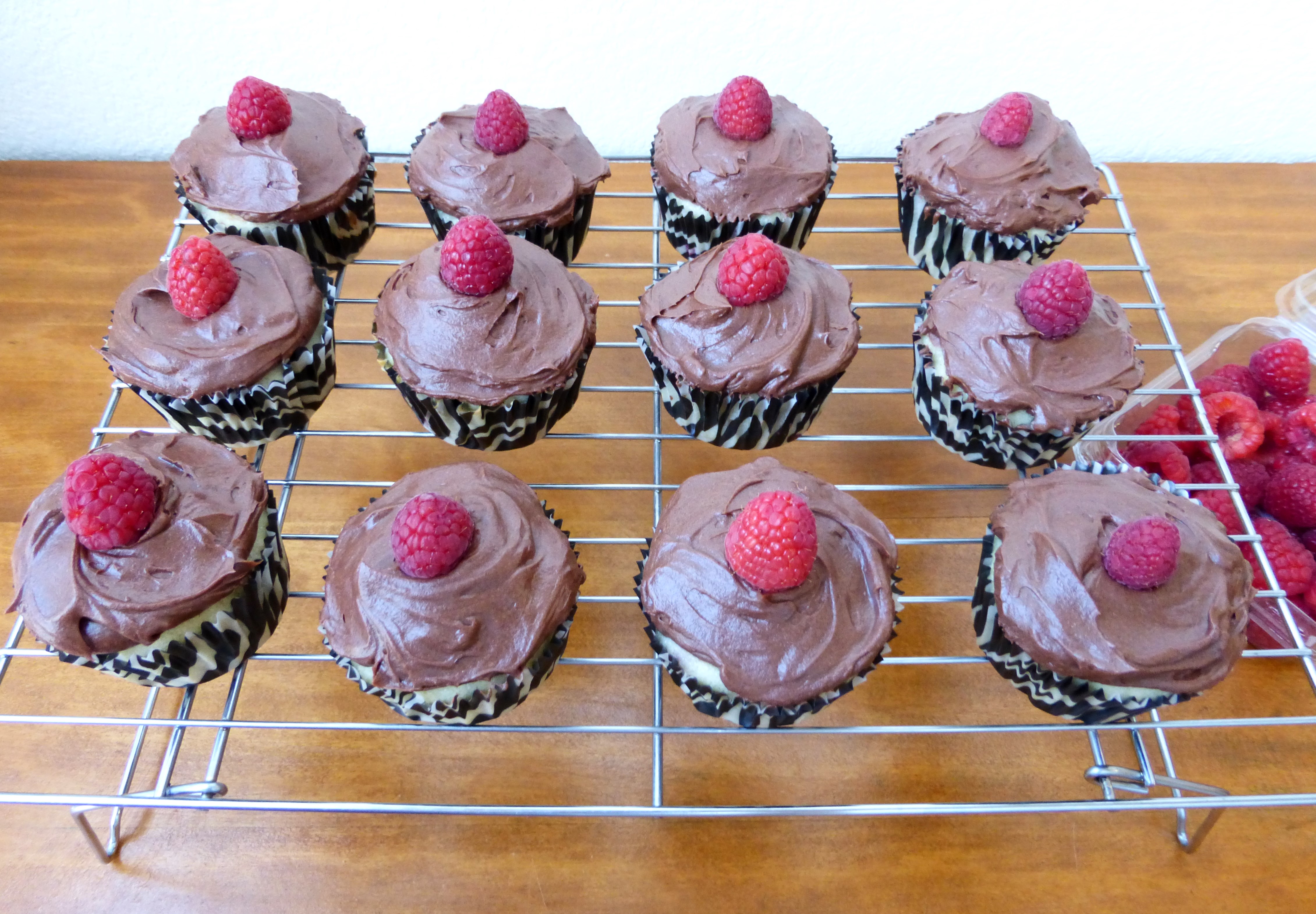 Joy the Baker’s Raspberry Almond Cupcakes with Chocolate Ganache (and I whipped the frosting, per Alton and Martha’s advice)