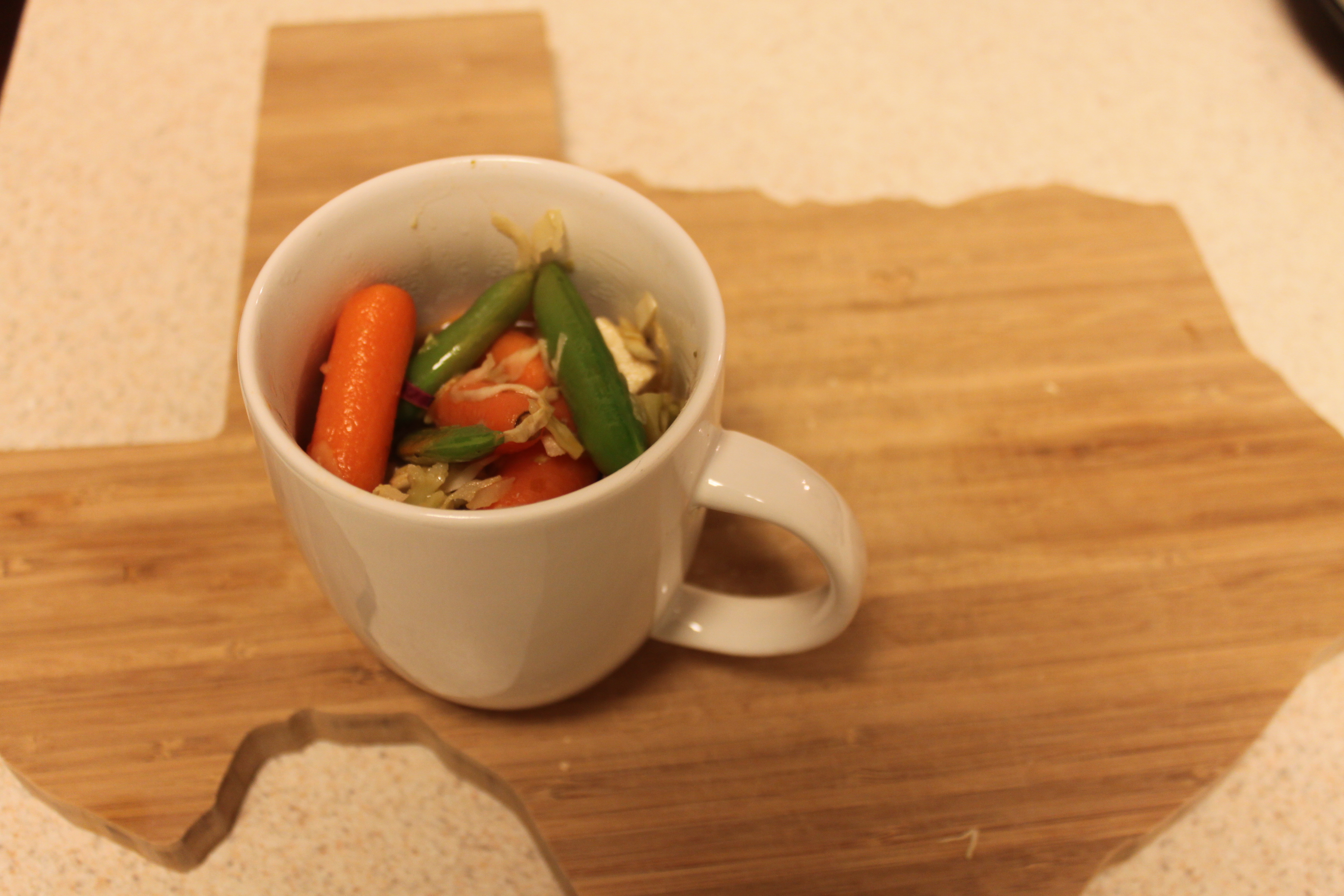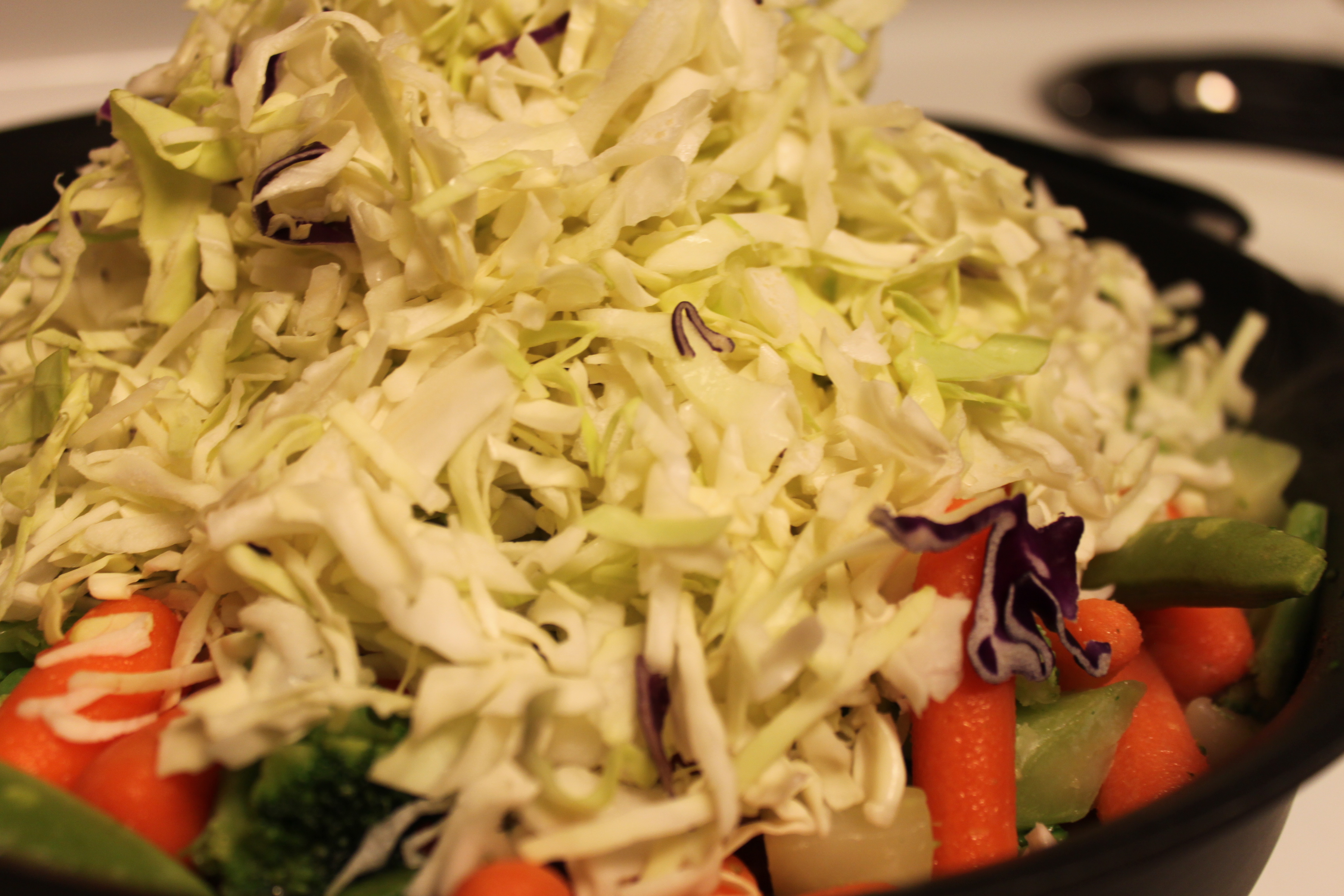 (6) Reduce heat to medium and add vegetables.  Cook to desired level of crunch.  I prefer my veggies on the raw side, which takes about 8 minutes.