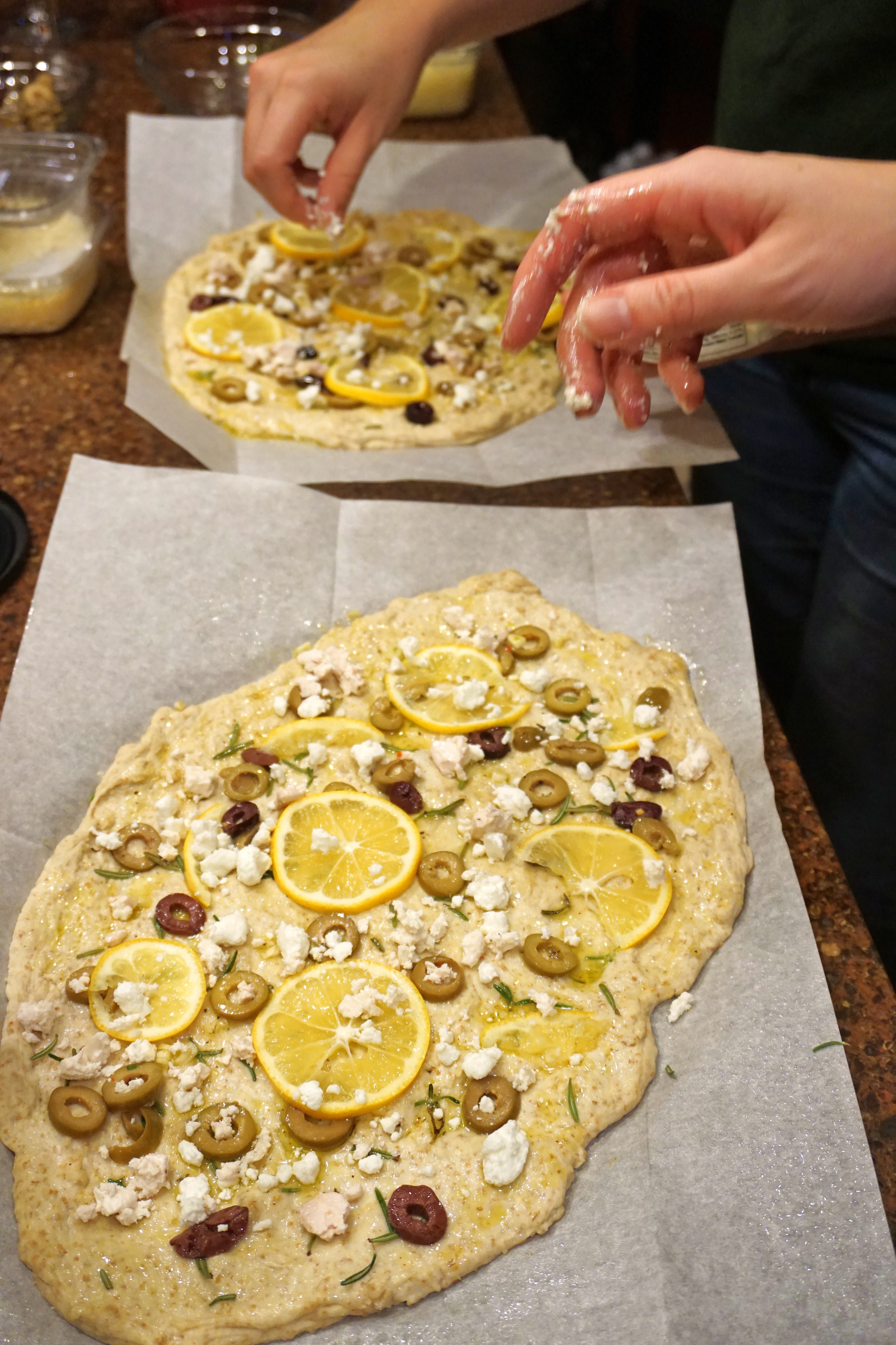 Flatbread with Meyer Lemon, Goat Cheese, Rosemary, and Olives